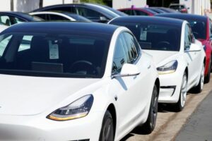 A new Tesla Model 3 is shown at a delivery center on the last day of the company’s third quarter, in San Diego, California, September 30, 2019. REUTERS/Mike Blake