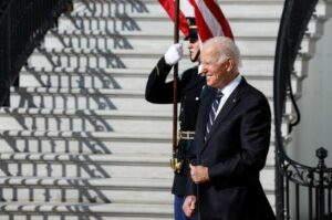 U.S. President Joe Biden awaits the arrival of Japan’s Prime Minister Fumio Kishida at the White House in Washington, U.S., January 13, 2023. REUTERS/Jonathan Ernst