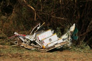A view shows aircraft wreckage at the crash site of an aircraft carrying 72 people in Pokhara in western Nepal January 15, 2023. REUTERS/Bijay Neupane
