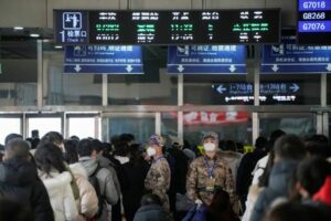 Paramilitary police direct people lining up at a railway station during the annual Spring Festival travel rush ahead of the Chinese Lunar New Year, as the coronavirus disease (COVID-19) outbreak continues, in Shanghai, China January 16, 2023. REUTERS/Aly Song