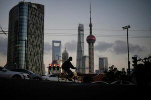 A man wearing a face mask rides a bike on a street following the coronavirus disease (COVID-19) outbreak, in Shanghai, China, October 13, 2022. REUTERS/Aly Song/Files