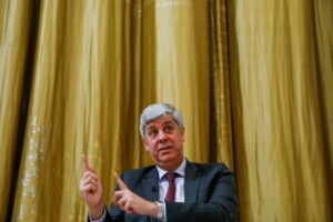 El miembro del Consejo de Gobierno del Banco Central Europeo (BCE) Mario Centeno durante una entrevista con Reuters, en Lisboa, Portugal, 15 de marzo de 2021. REUTERS/Pedro Nunes