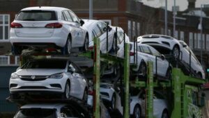 FILE PHOTO: Vauxhall cars are transported on a lorry in January 18, 2023 January 18, 2023 FILE PHOTO: Vauxhall cars are transported on a lorry in Luton, Britain March 6, 2017. REUTERS/Neil Hall/File Photo