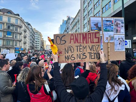 Almeida, who has five rescue dogs, travelled nearly 250 kms (155 miles) from the northern Portuguese city of Aveiro for the demonstration, which was organised by the Animal Intervention and Rescue (IRA) group.