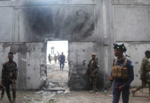 Somali security forces stand outside the mayor’s office following a blast in Mogadishu, Somalia January 22, 2023. REUTERS/Feisal Omar