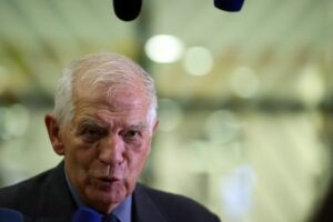 FOTO DE ARCHIVO: El Alto Representante de la Unión Europea para Asuntos Exteriores y Política de Seguridad, Josep Borrell, habla con los medios de comunicación mientras asiste a una reunión de ministros de Asuntos Exteriores de la Unión Europea (UE) en Bruselas, Bélgica, el 23 de enero de 2023. REUTERS/Johanna Geron