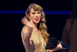 FILE PHOTO: Taylor Swift waves after receiving the Artist of the Year award during 2022 American Music Awards, at the Microsoft Theater in Los Angeles, California, U.S., November 20, 2022. REUTERS/Mario Anzuoni