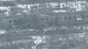 A general view of people said to be Russian soldiers seeking for shelter, in Kurdyumivka, amid Russia’s attack on Ukraine, in Donetsk region, Ukraine in this screengrab obtained from a handout drone footage on January 22, 2023. National Guard of Ukraine Press Service/Handout via REUTERS