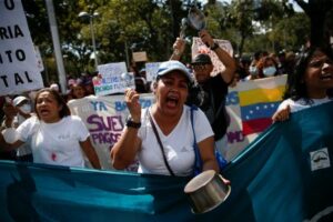 FOTO DE ARCHIVO: Profesores y empleados públicos protestan exigiendo mejoras salariales en medio de una altísima inflación, en Caracas, Venezuela. 16 de enero, 2023. REUTERS/Leonardo Fernández Viloria/Archivo