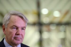 FOTO DE ARCHIVO: El el ministro de Asuntos Exteriores finlandés, Pekka Haavisto, durante una comparecencia ante los medios de comunicación en Bruselas, Bélgica, el 23 de enero de 2023. REUTERS/Johanna Geron