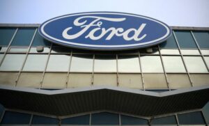 FILE PHOTO: Signage is seen outside the Ford Halewood transmissions plant in Liverpool, Britain, December 1, 2022. REUTERS/Phil Noble/File Photo