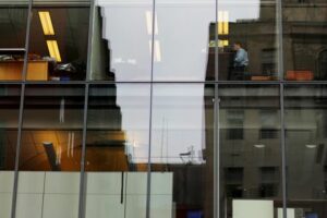 FILE PHOTO: A worker sits at his desk in an office building in Washington, U.S., August 3, 2018. REUTERS/Brian Snyder/File Photo