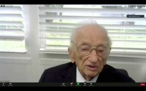 Benjamin Ferencz, exfiscal jefe en los juicios de Núremberg, habla durante una entrevista en video desde su casa en Delray Beach, Florida, Estados Unidos. 18 de noviembre, 2020, en esta imagen fija obtenida de un video. Reuters TV vía REUTERS