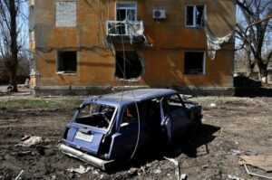Un coche destruido por los recientes bombardeos durante los intensos combates en la lĂnea del frente de Bajmut y Chasiv Yar, en Chasiv Yar, Ucrania, 10 de abril de 2023. REUTERS/Kai Pfaffenbach