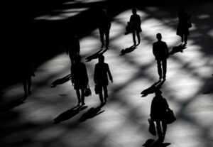 FILE PHOTO: People walk inside a building in Tokyo April 11, 2023 April 11, 2023 FILE PHOTO: People walk inside a building in Tokyo, Japan January 23, 2019. REUTERS/Issei Kato