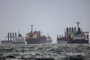 FILE PHOTO: Vessels are seen as they wait for inspection under United Nation’s Black Sea Grain Initiative in the southern anchorage of the Bosphorus in Istanbul, Turkey December 11, 2022. REUTERS/Yoruk Isik