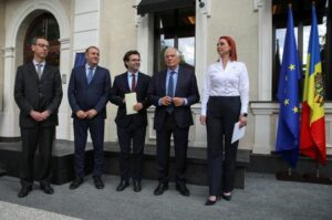 Officials, including High Representative of the European Union for Foreign Affairs and Security Policy Josep Borrell and Moldova’s Foreign Minister Nicu Popescu and Interior Minister Ana Revenco, take part in a ceremony opening the European Union’s partnership mission in Chisinau, Moldova, May 31, 2023. REUTERS/Vladislav Culiomza