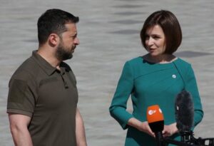 Ukraine’s President Volodymyr Zelenskiy and Moldova’s President Maia Sandu speak to the media during a meeting of the European Political Community at Mimi Castle in Bulboaca, Moldova June 1, 2023. REUTERS/Vladislav Culiomza