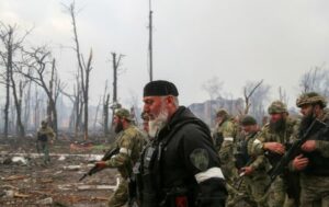 FILE PHOTO: Fighters of the Chechen special forces unit, led by Russia’s State Duma member Adam Delimkhanov, walk near the administration building of Azovstal Iron and Steel Works during Ukraine-Russia conflict in the southern port city of Mariupol, Ukraine April 21, 2022. REUTERS/Chingis Kondarov