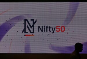 FILE PHOTO: A man walks past a new brand identity for Nifty Indices inside the National Stock Exchange (NSE) building in Mumbai, India, May 28, 2019. REUTERS/Francis Mascarenhas