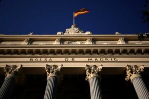 A Spanish flag flutters above the Madrid Stock Exchange June 7, 2023 June 7, 2023 FILE PHOTO: A Spanish flag flutters above the Madrid Stock Exchange, Spain, June 1, 2016. REUTERS/Juan Medina
