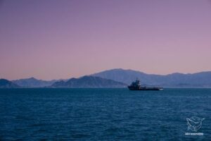 El buque Seahorse de la organización no gubernamental Sea Shepherd es visto al atardecer durante una investigación sobre la vaquita marina, cerca de San Felipe, en el Golfo de California, estado de Baja California, México 26 de abril, 2023. Sea Shepherd Conservation Society/Handout via REUTERS