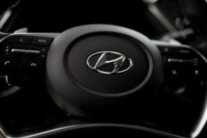 FILE PHOTO: The logo of Hyundai Motors is seen on a steering wheel on display at the company’s headquarters in Seoul, South Korea, March 22, 2019. REUTERS/Kim Hong-Ji