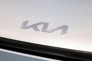 FILE PHOTO: A Kia logo is seen on a vehicle during the New York International Auto Show, in Manhattan, New York City, U.S., April 5, 2023. REUTERS/Andrew Kelly
