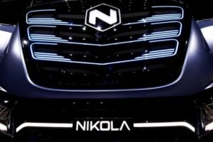 FILE PHOTO: Nikola’s logo is pictured at an event in Turin, Italy, December 3, 2019. REUTERS/Massimo Pinca