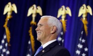 Der ehemalige US-Vizepräsident Mike Pence bei der Ankündigung seiner Kampagne