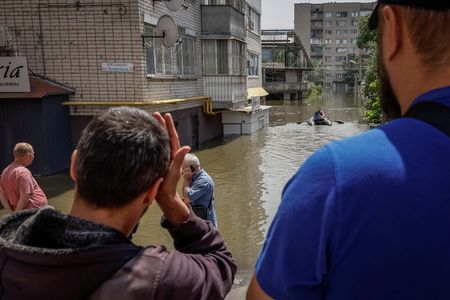 KHERSON, Ukraine (Reuters) – Ukrainians abandoned inundated homes on Wednesday as floods crested across the south after the destruction of a huge hydroelectric dam on front lines between Russian and Ukrainian forces, with their presidents trading blame for the disaster.