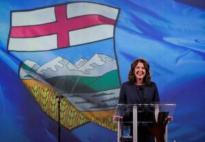 FILE PHOTO: Danielle Smith of the United Conservative Party (UCP) speaks during her party’s provincial election night party after a projected win in Calgary, Alberta, Canada May 29, 2023. REUTERS/Todd Korol