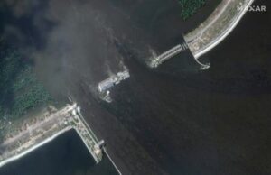 FOTO DE ARCHIVO. Una imagen satelital muestra la represa Nova Kajovka y la planta hidroeléctrica después de su colapso, en Nova Kajovka, Ucrania, el 7 de junio de 2023. Maxar Technologies/Distribuida vía REUTERS