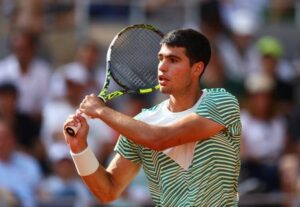 Tennis – French Open – Roland Garros, Paris, France – June 9, 2023 Spain’s Carlos Alcaraz in action during his semi final match against Serbia’s Novak Djokovic REUTERS/Lisi Niesner