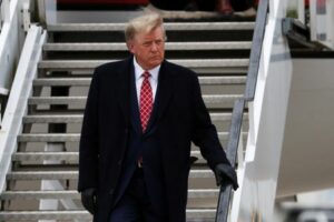 FILE PHOTO: Former U.S. President and Republican presidential candidate Donald Trump arrives at Aberdeen International Airport in Aberdeen, Scotland, Britain May 1, 2023. REUTERS/Russell Cheyne