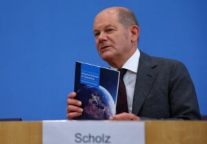 German Chancellor Olaf Scholz holds a document during a press conference on the day the cabinet presents the national security strategy at the House of ‘Bundespressekonferenz’ in Berlin, Germany June 14, 2023. REUTERS/Fabrizio Bensch