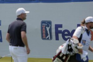 FILE PHOTO: Players move to the next hole during the Canadian Open’s Championship Pro-Am after news was released of a new partnership between the PGA Tour and Saudi-backed LIV Golf circuit, at Oakdale Golf and Country Club in Toronto, Ontario, Canada June 7, 2023. REUTERS/Nick Lachance/File Photo