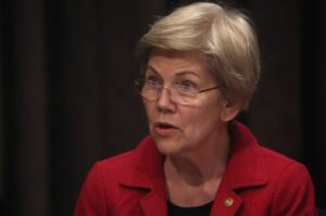 FILE PHOTO: U.S. Sen. Elizabeth Warren (D-MA) asks questions as U.S. Consumer Financial Protection Bureau (CFPB) Director Rohit Chopra testifies before a Senate Banking, Housing and Urban Affairs Committee hearing on “the Consumer Financial Protection Bureau’s Semi-Annual Report to Congress” on the Hill in Washington, U.S., June 13, 2023. REUTERS/Leah Millis/File Photo