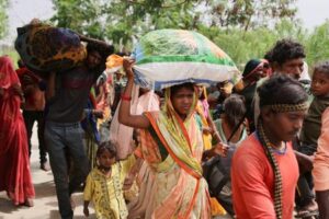 People arrive at a shelter in Naliya after they were evacuated from their homes before the arrival of cyclone Biparjoy, in the western state of Gujarat, India, June 14, 2023. REUTERS/Francis Mascarenhas