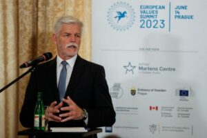 Czech President Petr Pavel delivers a speech during the European Values Summit in Prague, Czech Republic June 14, 2023. REUTERS/David W Cerny/File Photo