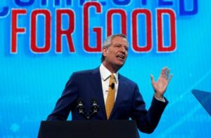 FILE PHOTO: New York City Mayor Bill de Blasio speaks at AIPAC in Washington, U.S., March 25, 2019. REUTERS/Kevin Lamarque/File Photo
