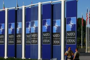 Members of the security stand outside Alliance’s headquarters on the day of NATO Defence Ministers’ meeting in Brussels, Belgium June 15, 2023. REUTERS/Yves Herman