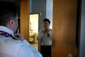 Vitus “V” Spehar, 40, who discusses relevant national news with their 2.9 million TikTok followers, gets ready to attend the GLAAD media awards ceremony for their podcast’s nomination, in New York, U.S., May 13, 2023. REUTERS/Magali Druscovich
