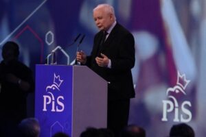 Jaroslaw Kaczynski, Law and Justice (PIS) leader, speaks during Law and Justice party convention in Warsaw, Poland May 13, 2023. Slawomir Kaminski/Agencja Wyborcza.pl via REUTERS/File Photo