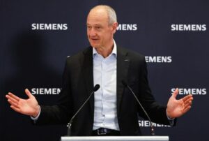 FILE PHOTO: Siemens CEO Roland Busch announces their plans for a new Singapore plant, at their office in Singapore June 15, 2023. REUTERS/Edgar Su/File Photo