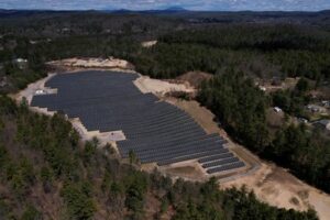 FILE PHOTO: Solar panels are arrayed on Earth Day in Athol, Massachusetts, U.S., April 22, 2022. Picture taken with a drone. REUTERS/Brian Snyder/File Photo