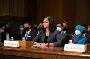 Nusrat Choudhury, a nominee to serve as a federal judge in the Eastern District of New York, appears before the U.S. Senate Judiciary Committee in Washington, D.C. on April 27, 2022. U.S. Senate/Handout via REUTERS/File Photo