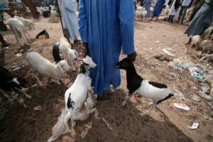 A herder holds goats that are for sale, two weeks ahead of Eid al-Adha, locally known as Tabaski, at a livestock market in Dahra Djolof, Senegal June 13, 2023. REUTERS/Zohra Bensemra