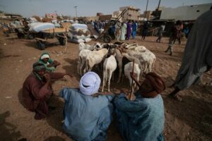 Herders sits by their sheep and goats that are for sale as they wait for customers, two weeks ahead of Eid al-Adha, locally known as Tabaski at a livestock market in Dahra Djolof, Senegal June 13, 2023. REUTERS/Zohra Bensemra
