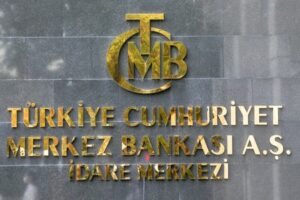 FILE PHOTO: A logo of Turkey’s Central Bank is pictured at the entrance of its headquarters in Ankara, Turkey October 15, 2021. REUTERS/Cagla Gurdogan/File Photo